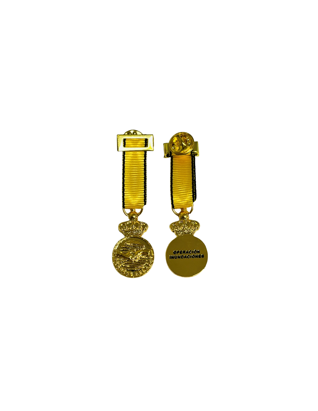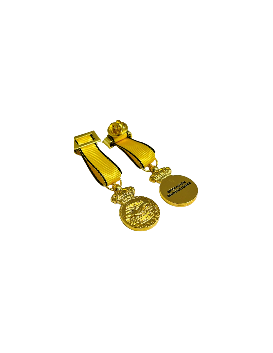 La Medalla Miniatura Conmemorativa DANA 2024, creada por el Ministerio de Defensa, reconoce al personal militar y civil que participó en la operación de emergencia durante la DANA Valencia 2024 que afectó a Valencia el 29 Octubre de 2024. Diseño exclusivo con manos entrelazadas, cinta amarilla y negra que simboliza valor y luto.Esta distinción premia el compromiso, la valentía y el servicio de los que participaron en las labores de emergencia y seguridad durante el temporal. Reconocimiento oficial, conmemorativo y de colección.