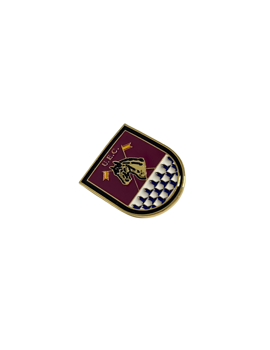 fileteada de oro, una campaña sembrada de veros menudos. En el corazón, sumada, de oro perfilada de sable, una cabeza de caballo, diestrada, fijada, animada y desguarnecida, resaltada sobre dos lanzas de oro, con sendos vexilos enarbolados. En el centro del jefe, alterado, anagramado de oro, compuesto con el siglónimo "U.E.C." (Unidad Especial de Caballería).