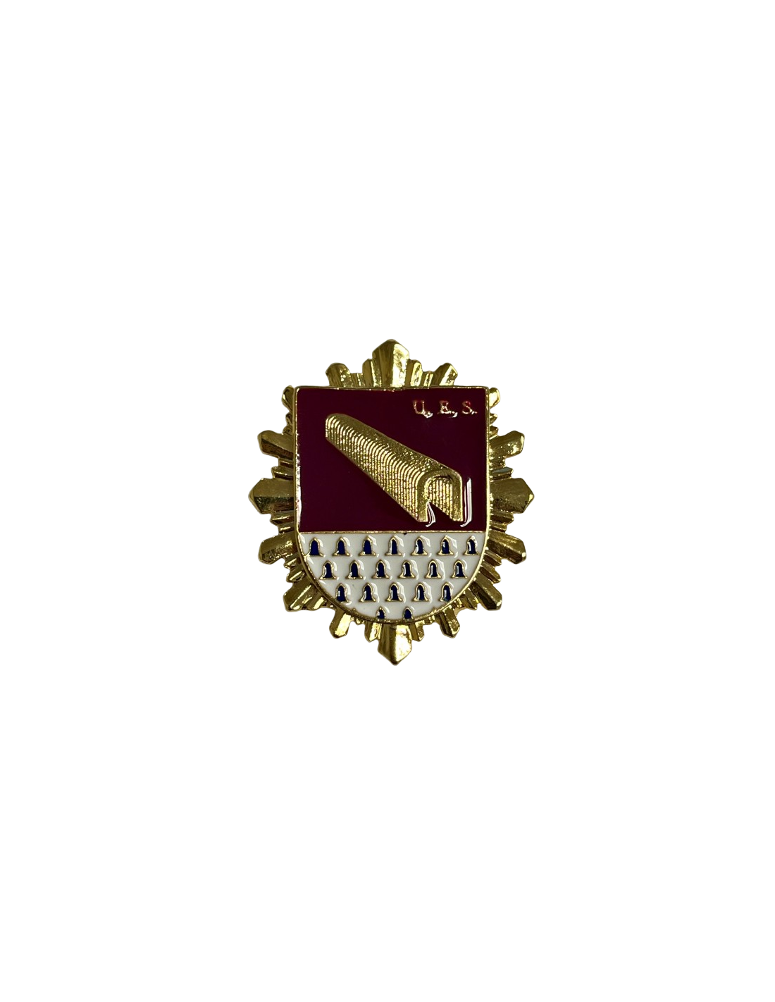En campo de púrpura fileteada de oro, alterada, una campaña sembrada de armiños. En el corazón, una sucesión de arcos de oro, perfilados de gules, que comienzan en el centro del cantón diestro del jefe y finalizan en el flanco siniestro. En el cantón siniestro del jefe, alterado, anagramado de oro, compuesto por siglónimo "U.E.S." (Unidad Especial de Subsuelo).