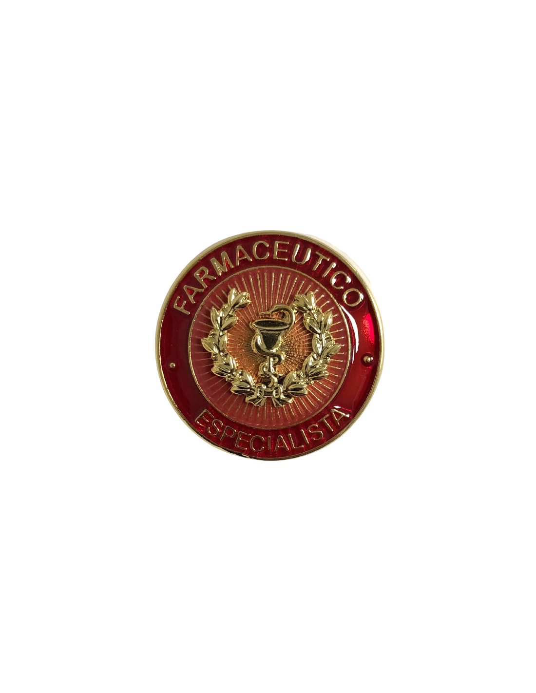 Especialidades complementarias correspondientes a la especialidad fundamental «FARMACIA» (Figura II). En campo de púrpura, un cáliz con áspid enrollado y cabeza en jefe, acompañadas por dos ramas de olivo curvadas a diestra y siniestra, liadas y atadas en su base con una cinta, todo ello en oro. Bordura en gules, con la leyenda: «FARMACÉUTICO» en jefe y «ESPECIALISTA» en punta.