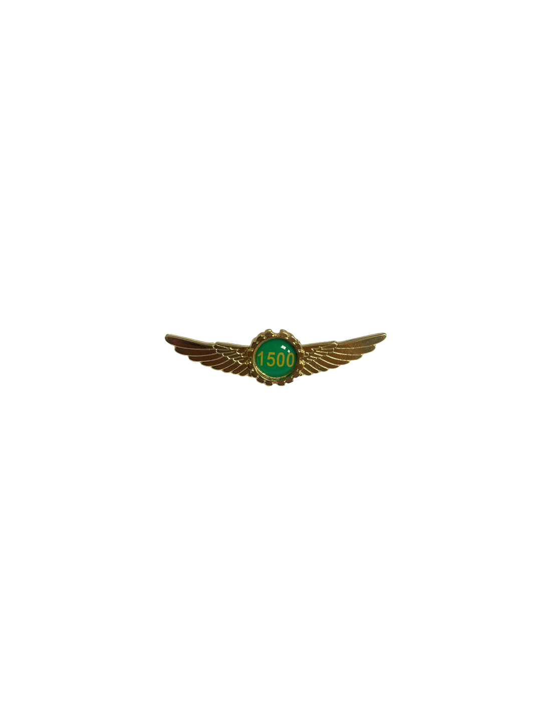 DESCRIPCIÓN. Consistirá en un vuelo en oro, resaltado en su punto de unión, una corona de laurel del mismo color que el vuelo y en su interior una chapa esmaltada que, dependiendo del número de horas de vuelo, variará su color. Dentro de ella resaltará el número de horas de vuelo en oro hasta las 1500 horas de vuelo y en gules (rojo) a partir de las 2000.