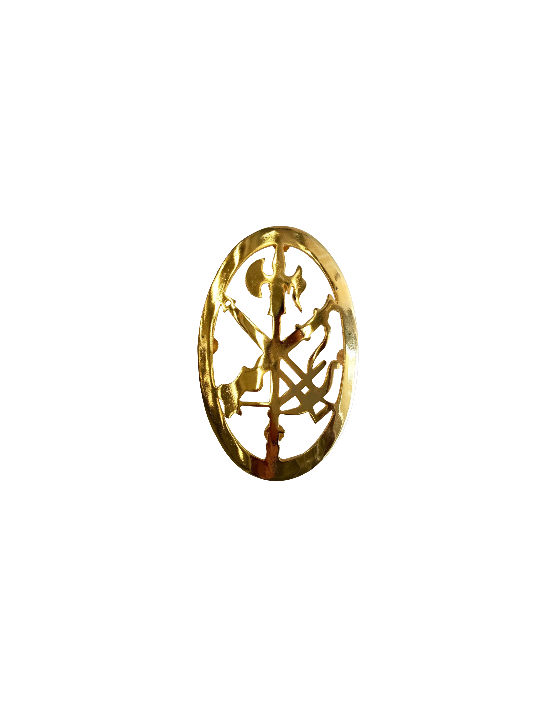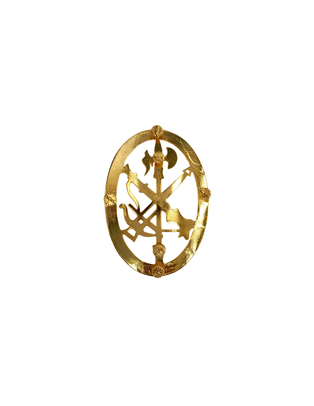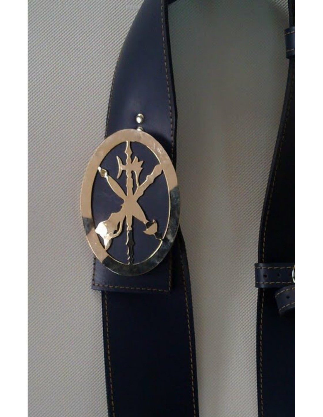 Placa emblema de gastador de la Legión fabricadas en latón dorado, medidas 13 X 8 cm, con puente para poner en el correaje o dos imperdibles para enganchar a la camisa en la parte del brazo.