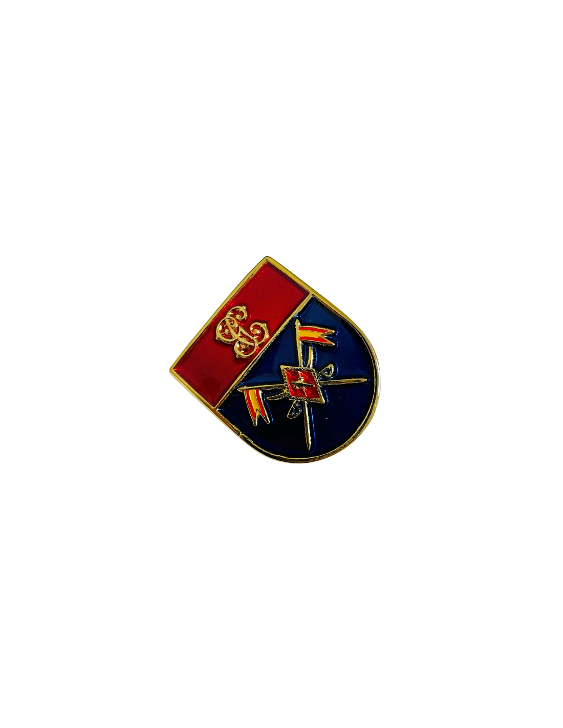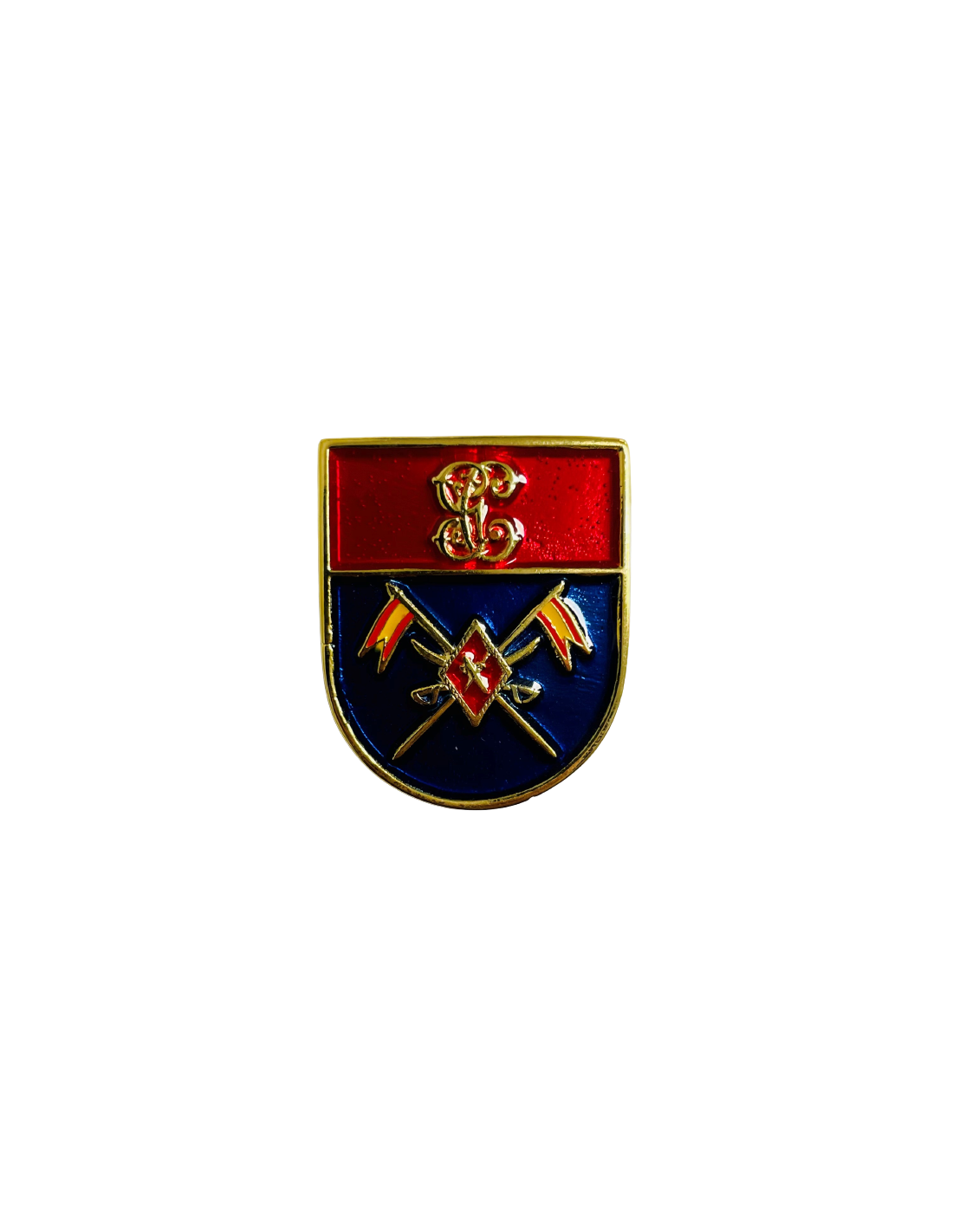 Descripción: Escudo español cuadrilongo de 30 x 25 milímetros fileteado de oro. En campo de azur dos lanzas de caballería cruzadas y dos sables también cruzados, todo ello de oro. Superpuesto un rombo de gules con el filo y el emblema de la Guardia Civil de oro. El jefe de gules cargado de las letras G y C, de oro, entrelazadas. 9.2.- Derecho al uso: Personal que esté en posesión del diploma del curso de especialización de la modalidad ecuestre (ECE), de la especialidad Seguridad e Intervención (SEIN).