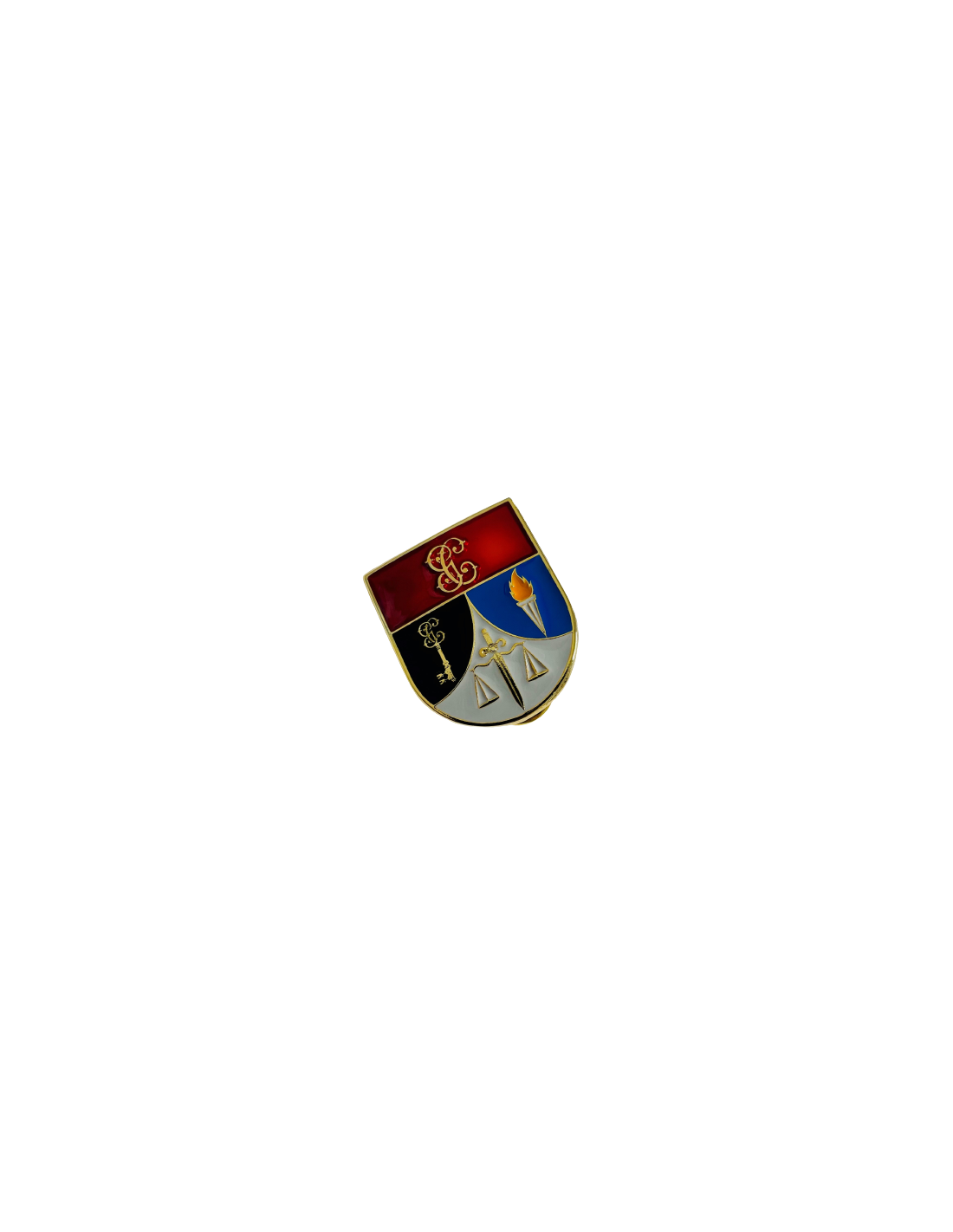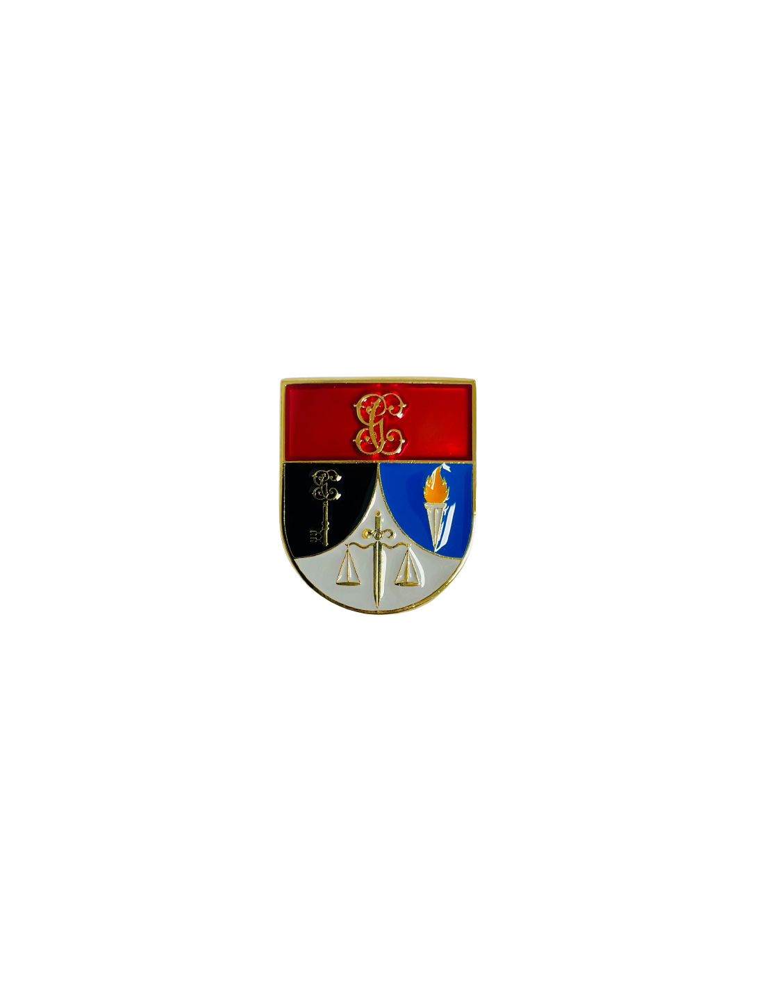 Descripción: Escudo español cuadrilongo de 30 x 25 milímetros fileteado de oro. Campo de plata cortinado. 1º en campo de sable una llave de oro puesta en palo con las letras G y C entrelazadas en jefe y el paletón a la diestra. 2º en campo de azur una antorcha. En punta, una espada de oro sosteniendo una balanza. El jefe de gules cargado con las letras G y C de oro entrelazadas. 8.2.- Derecho al uso: Personal que esté en posesión de algunos de los diplomas de los cursos de especialización de cualquiera de las modalidades de la especialidad Criminalística (CRIM).